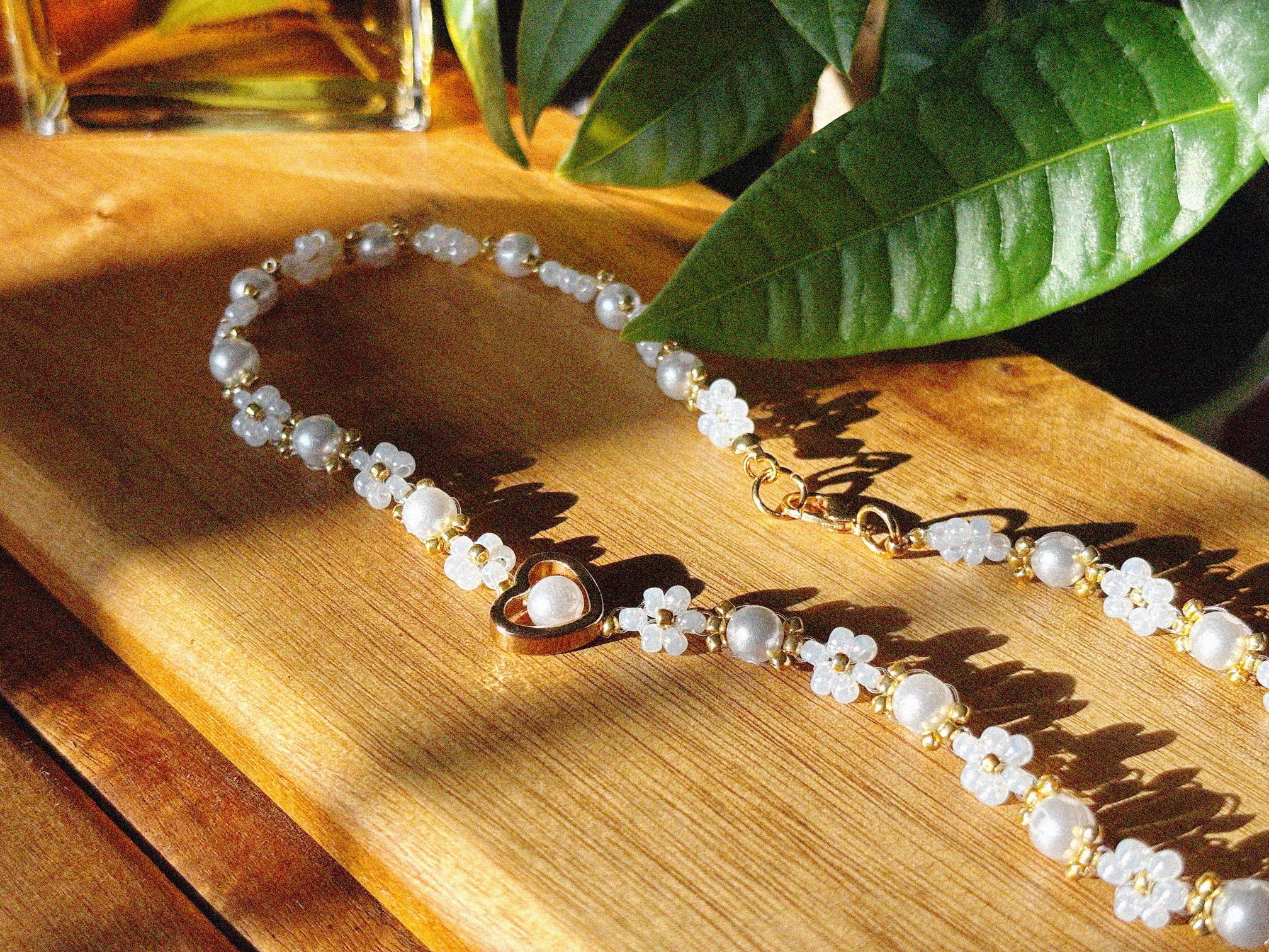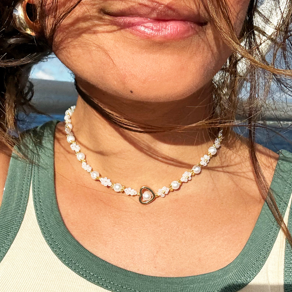 Daisy Pearl Heart Necklace
